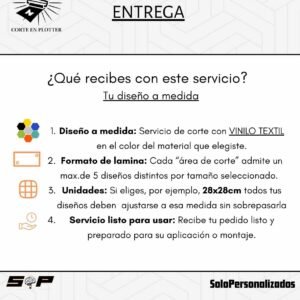 Para el servicio de vinilo de corte solo debes seleccionar la cantidad de colores que necesites. Luego revisa las medidas de tu diseño y selecciona el tamaño que corresponda por pieza. Después indica dónde vas a instalar tu vinilo: si es en interior, como en cristales, selecciona la opción “modo espejo”, y si es en exterior, selecciona “fuera”. Finalmente, dirígete a la imagen Nº 5, elige el color que deseas y escribe la referencia en la casilla de texto. Con estos pasos el sistema calculará automáticamente el precio de tu pedido